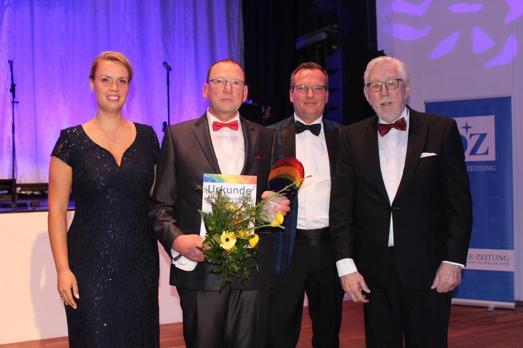 - Laura Isabelle Marisken (Heringsdorfer Bürgermeisterin), Kersten Fubel (VS-Hort), Andreas Ebel (OZ-Chefredakteur) und Heinz-Egon Achterkerke (Vorstand Achterkerke-Stiftung)