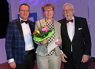 - (v.l.) Andreas Ebel (OZ-Chefredakteur), Annett Knuth (Vereinsvorsitzende „Lütte Sprösslinge“) und Heinz-Egon Achterkerke