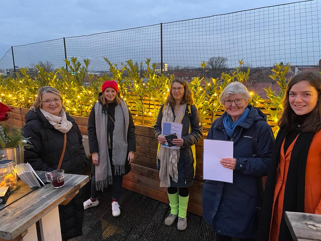 Über den Dächern von Braunschweig gehörte ein Abend ganz allein den ehrenamtlichen Bildungs- und Familienpaten des Kinderschutzbundes. „Auch Ehrenamt bedarf der Anerkennung und Würdigung“, so Nora Pagels Vorstand der Achterkerke Stiftung. Mit Freude überreichte sie 20 Bildungs- und Familienpaten Urkunden und Büchergutscheine im Wert von über 600 €. Eine besondere Würdigung bekamen Silke Widemann und Jutta Grzimek.