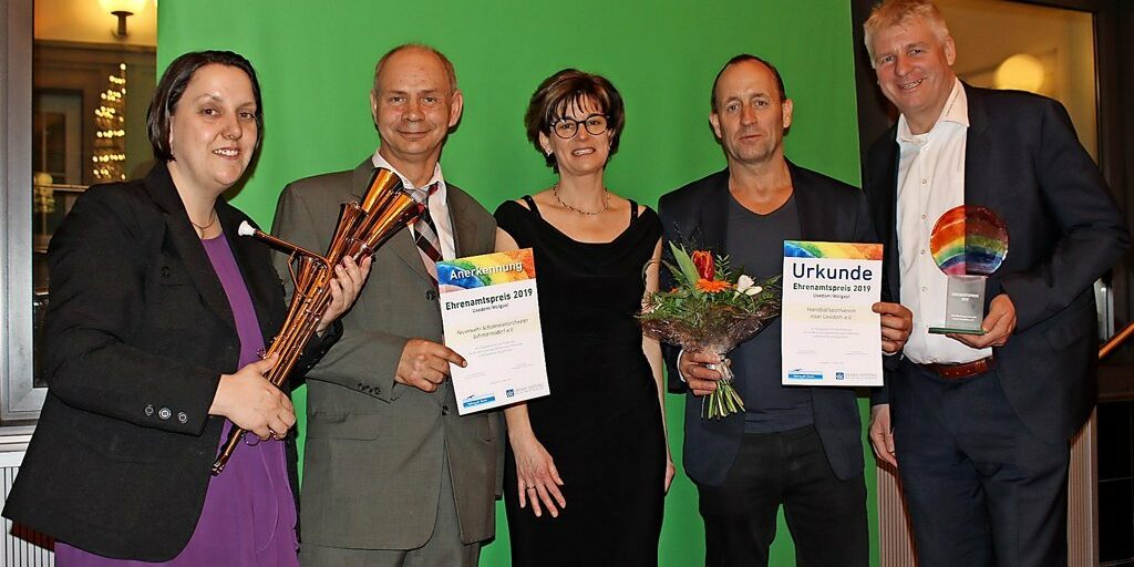 Für seine herausragende Kinder- und Jugendarbeit erhielt der Handballsportverein (HSV) Insel Usedom den4.000 € dotierten Ehrenamtspreis. 508 Vereinsmitglieder, davon 306 Kinder und Jugendlich können sich über das Geld freuen, welches in neue Spielgeräte, Bälle und Ausstattungen im Vereinsstandort Zinnowitz investiert werden soll. Der Anerkennungspreis der Achterkerke-Stiftung bekam das Feuerwehr-Schalmeienorchester Lühmannsdorf. Als besondere Überraschung übergaben Heinz-Egon Achterkerke und Grit Vehreschild dem Vereinsmitgliedern Susanne und René Wiche eine Schalmei im Wert von 1.200 €.