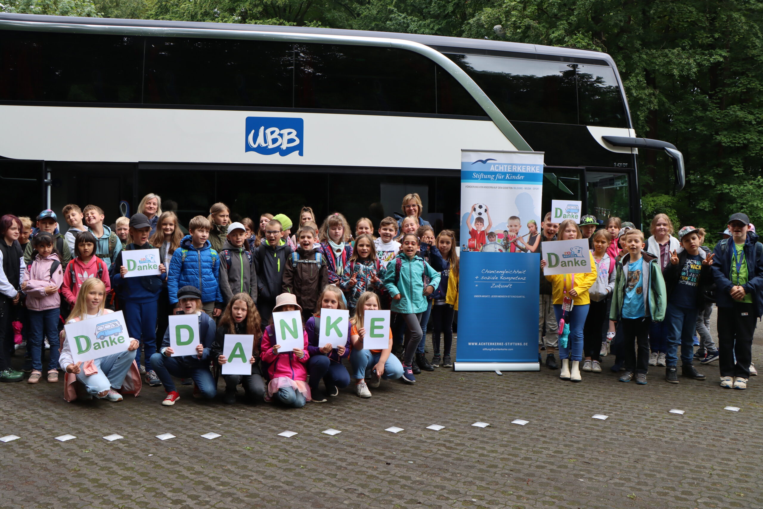 Seit 2013 ermöglicht die Achterkerke Stiftung Grundschülern der Insel Usedom den Besuch der Zooschule im Tierpark Wolgast. Mit einem eigens organisierten Bus werden die Schülerinnen und Schüler in den rund 35 Kilometer entfernten Tierpark Wolgast gebracht, wo sie in einem außergewöhnlichen „Klassenzimmer“ unterrichtet werden.